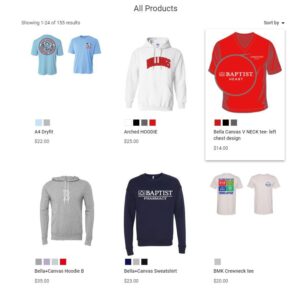 We offer in house screen printing, sublimation, embroidery and heat pressed vinyl. We also offer online stores for all inhouse items for your fundraising success that gives you the ability to do your own graphics through our site.